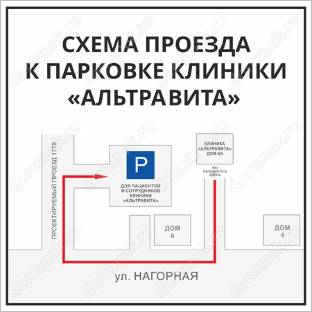Если ваша парковка находится в некотором отдалении от главного входа в здание, закажите «Схему проезда к парковке» – и ваши клиенты будут вам очень благодарны. Наши специалисты точно и профессионально нарисуют необходимую схему, табличка может быть изготовлена из пластика, композита или металла, а светоотражающая поверхность обеспечит эффективное использование знака в темное время суток.