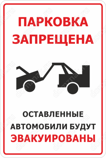 Табличка «Парковка запрещена. Автомобили будут эвакуированы»
