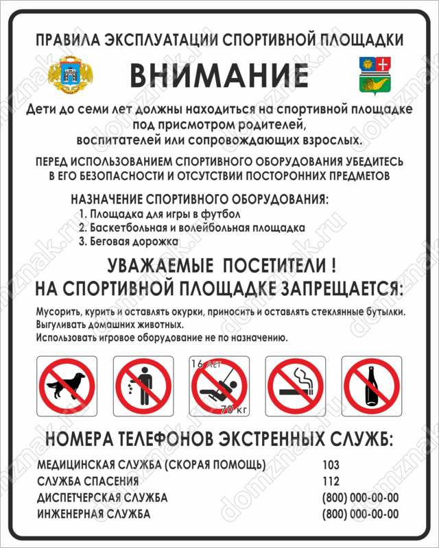 Табличка Правила эксплуатации спортивной площадки