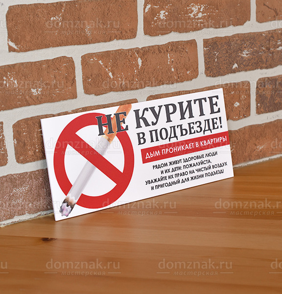 Табличка объявление Не курите в подъезде изготавливается в нескольких вариантах: