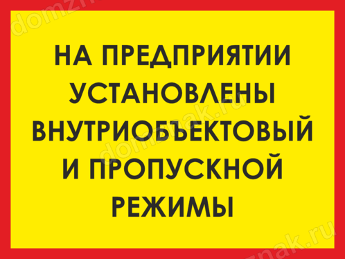 Табличка «На предприятии установлен пропускной режим» изготавливается на основе из пластика ПВХ или оцинкованного металла.