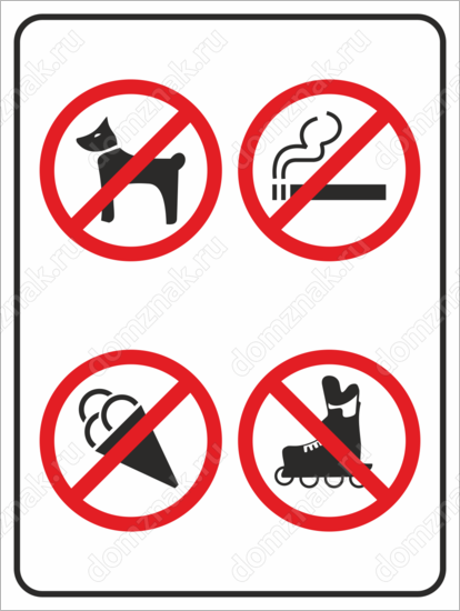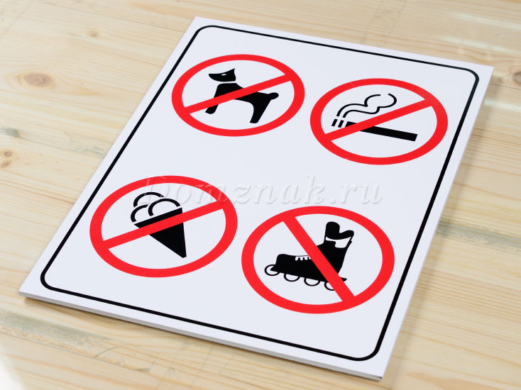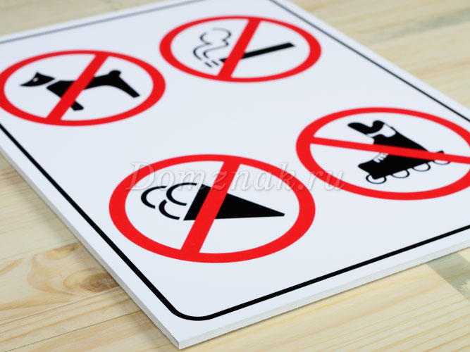Запрещающая табличка в магазин изготавливается в следующих вариантах: