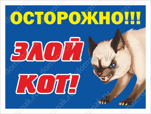 Табличка «Осторожно, злой кот» изготавливается на основе из пластика ПВХ или оцинкованного металла.