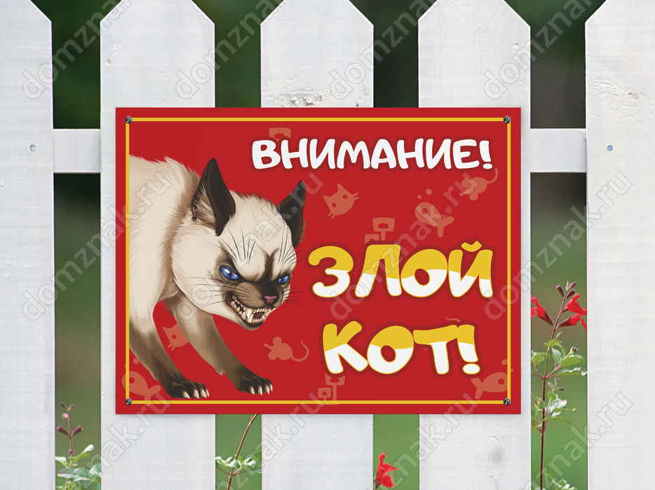 Табличка «Внимание, злой кот» изготавливается на основе из пластика ПВХ или оцинкованного металла.