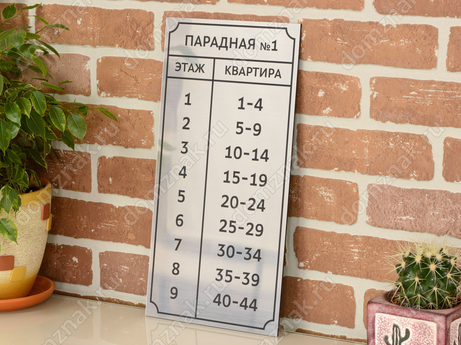 • Табличка «Парадная» изготавливается из двухслойного пластика, толщиной 1,6 миллиметра. Пластик состоит из двух слоев: основы черного (или белого) цвета и лицевого слоя контрастного цвета.