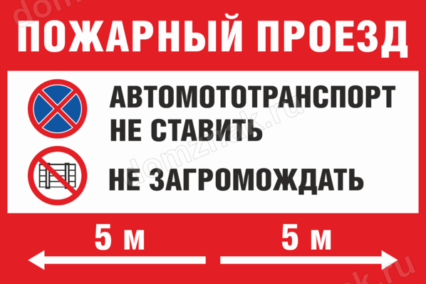Табличка «Пожарный проезд, автомототранспорт не ставить»