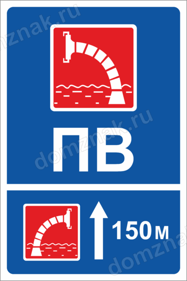 Знак «Пожарный водоем» изготавливается в нескольких вариантах:
