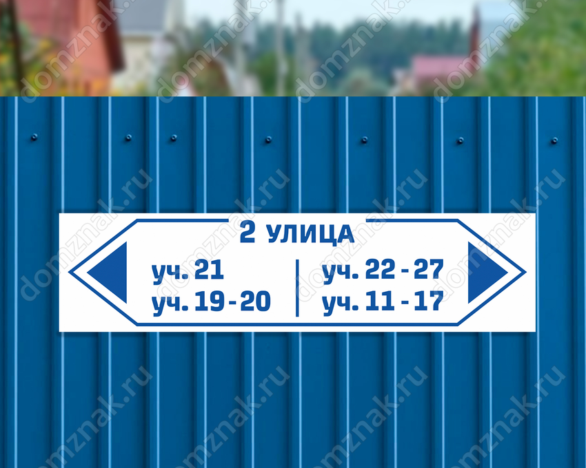 Табличка с номером улицы и номерами участков СНТ изготавливается на основе из пластика ПВХ или оцинкованного металла.