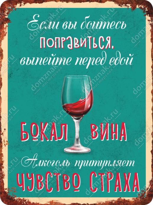 Табличка Алкоголь притупляет чувство страха