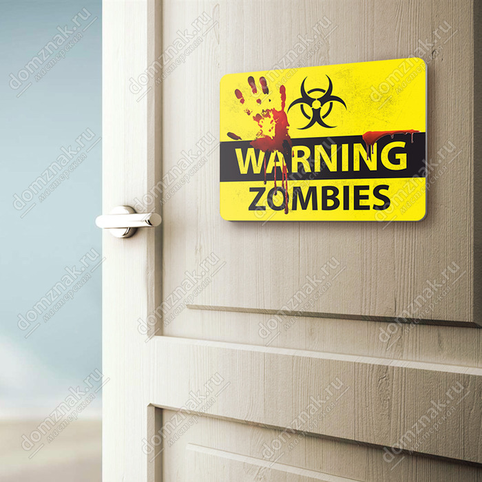 Табличка «Warning zombies» изготовлена из пластика ПВХ, толщиной 4 мм. Изображение наносится по технологии УФ-печати. Табличка предназначена для использования как в помещении, так и на улице.