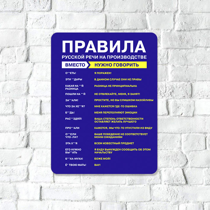 Табличка «Правила русской речи на производстве»