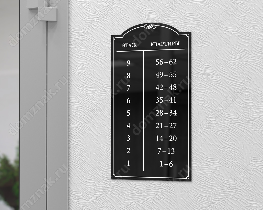 Табличка поэтажное расположение квартир