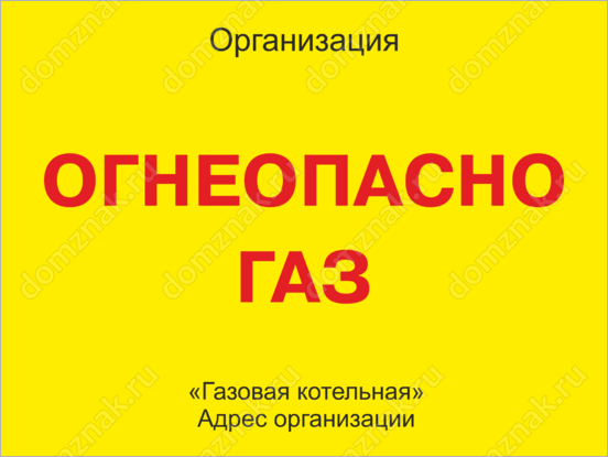 Табличка «Огнеопасно Газ» изготавливается в нескольких вариантах:
