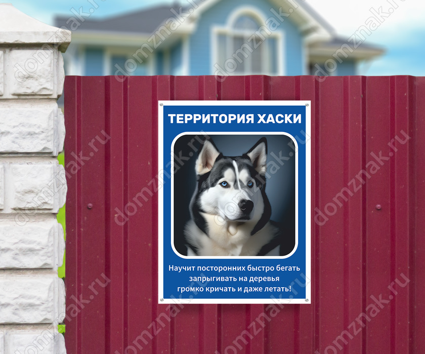 Табличка «Территория Хаски» изготавливается на основе из пластика ПВХ или оцинкованного металла.