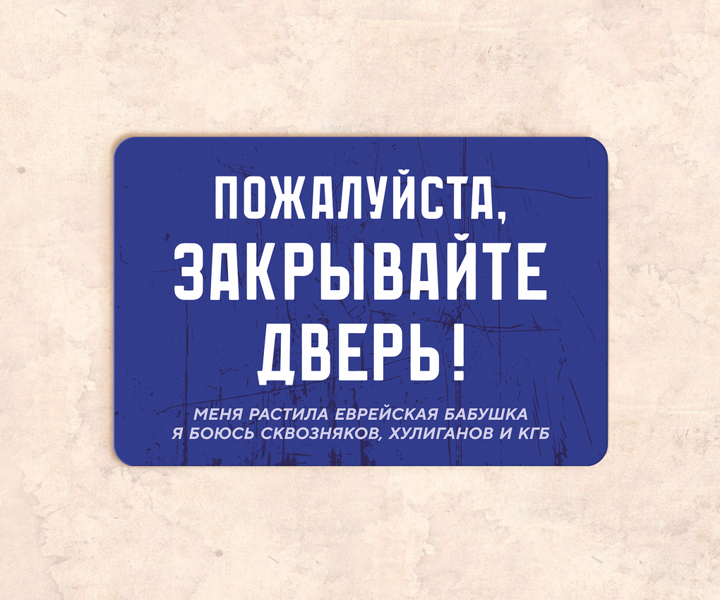 Табличка «Пожалуйста, закрывайте дверь. Меня растила еврейская бабушка я боюсь сквозняков, хулиганов и КГБ»