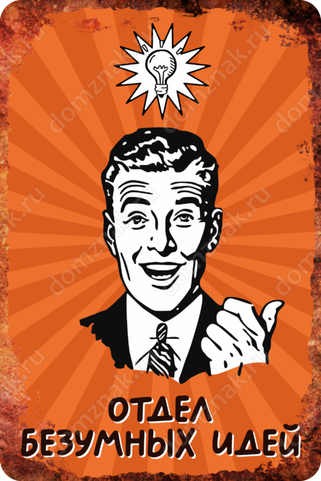 Табличка «Отдел безумных идей» изготовлена из пластика ПВХ, толщиной 4 мм. Изображение наносится по технологии УФ-печати. Табличка предназначена для использования как в помещении, так и на улице.