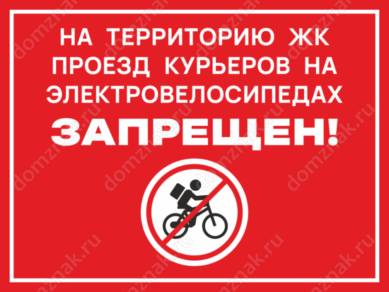 Табличка «На территории ЖК проезд курьеров на электровелосипедах запрещен»