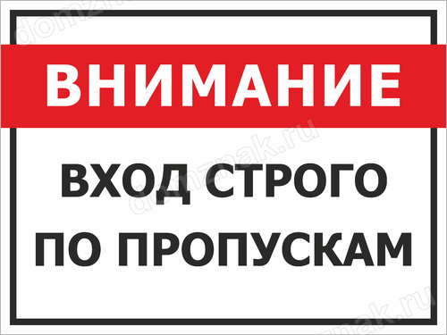 Табличка Внимание, вход строго по пропускам