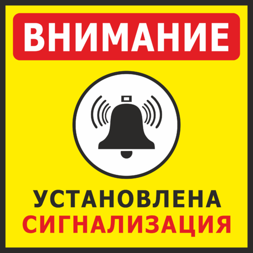 Табличка Установлена сигнализация изготавливается на основе из пластика ПВХ или оцинкованного металла.