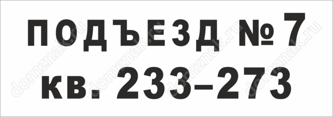 Ничего лишнего, никакой игры цвета и формы – простой прямоугольник, монохромная цветовая гамма и минимум информации. Только номер подъезда и диапазон квартиры – табличка на подъезд в стиле минимализма для тех, кто выбирает лаконичность.