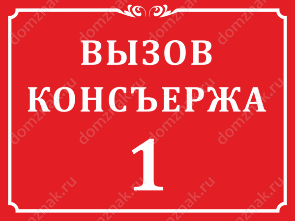 Классическая рамка подчеркивает традиционность формы, темно-красный цвет выглядит эффектно и благородно – табличка «Вызов консьержа» подскажет посетителю, на какую цифру нажать, чтобы переговорить с дежурным.